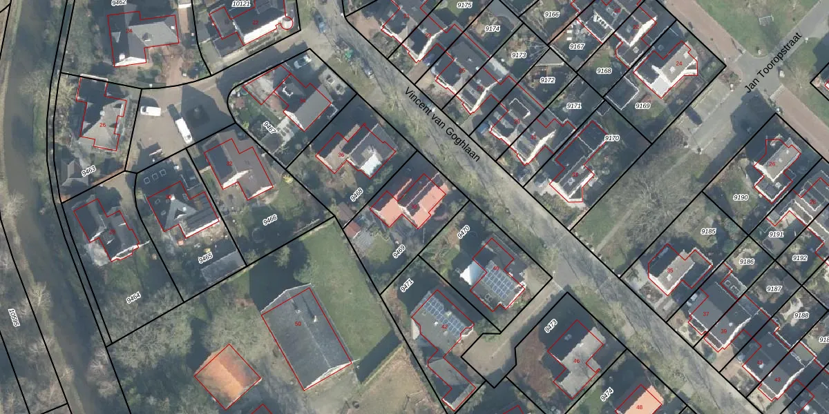 Vincent van Goghlaan 38 is gelegen op kadastraal perceel LNK00N9469. Deze kadastrale aanduiding is uniek en wordt gebruikt door het Kadaster om eigendomsrechten en andere zakelijke rechten vast te leggen. Het perceel maakt onderdeel uit van de kadastrale gemeente Lonneker.
