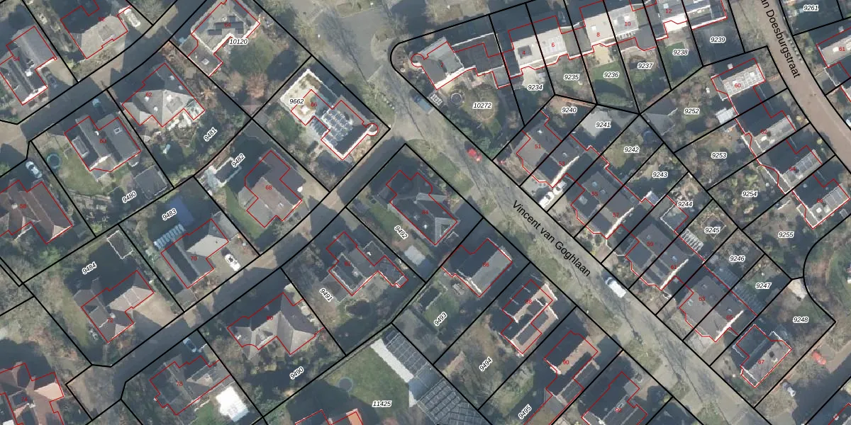 Vincent van Goghlaan 84 is gelegen op kadastraal perceel LNK00N9492. Deze kadastrale aanduiding is uniek en wordt gebruikt door het Kadaster om eigendomsrechten en andere zakelijke rechten vast te leggen. Het perceel maakt onderdeel uit van de kadastrale gemeente Lonneker.