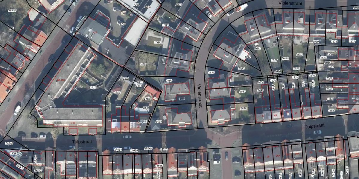 Gebruik de zoekbalk of klik op een perceel voor informatie over de adressen binnen dit perceel.