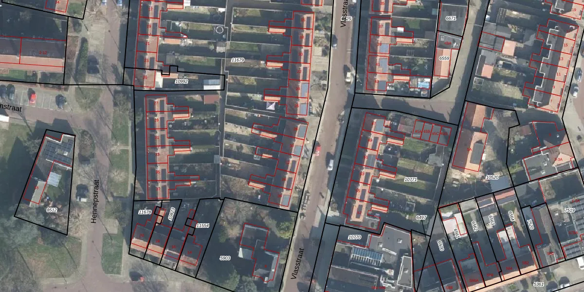 Het perceel waarop Vlasstraat 30 staat heeft een oppervlakte van 6540 m². Dit is een zeer groot perceel. De perceeloppervlakte wordt geregistreerd door het Kadaster. Gedetailleerde informatie over de maten van dit perceel kunt u vinden in het rapport Kadastrale kaart met maatvoering van Vlasstraat 30.