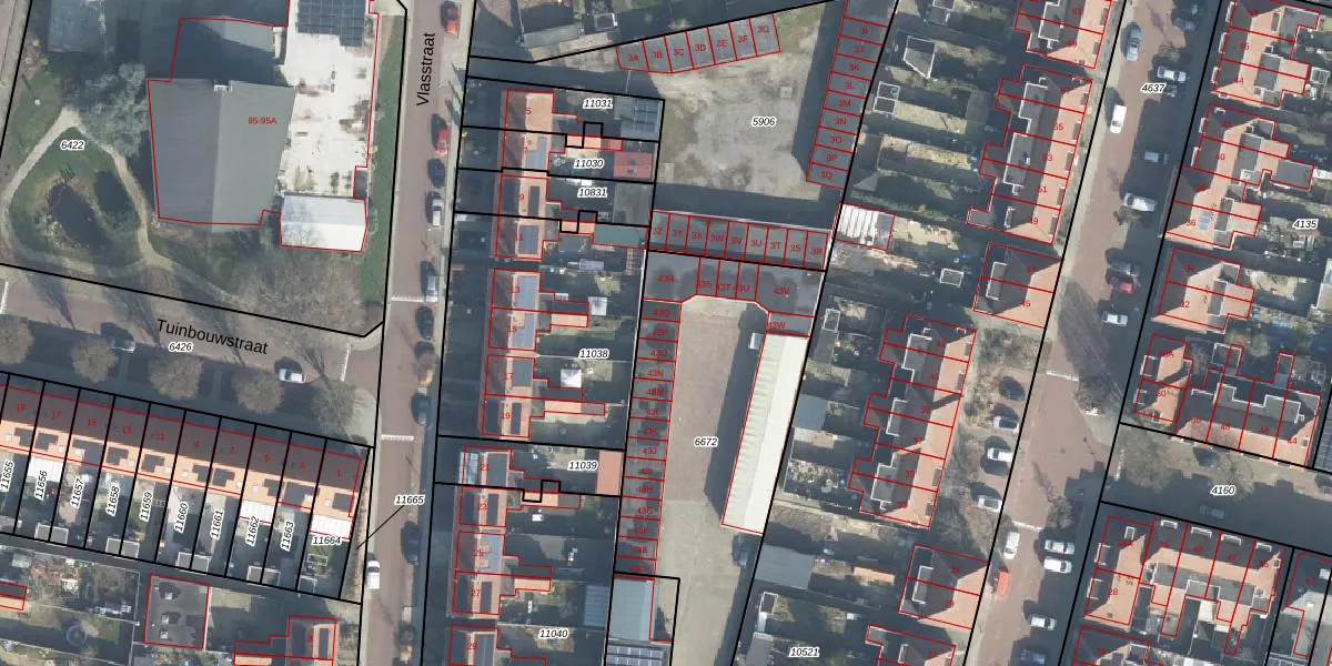 Het perceel waarop Vlasstraat 43-P staat heeft een oppervlakte van 1866 m². Dit is een zeer groot perceel. De perceeloppervlakte wordt geregistreerd door het Kadaster. Gedetailleerde informatie over de maten van dit perceel kunt u vinden in het rapport Kadastrale kaart met maatvoering van Vlasstraat 43-P.