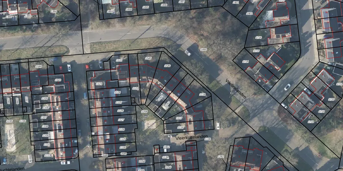 Het perceel waarop Vleerkottelanden 12 staat heeft een oppervlakte van 165 m². Dit is een middelgroot perceel. De perceeloppervlakte wordt geregistreerd door het Kadaster. Gedetailleerde informatie over de maten van dit perceel kunt u vinden in het rapport Kadastrale kaart met maatvoering van Vleerkottelanden 12.