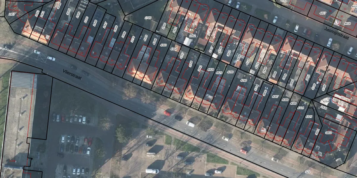 Gebruik de zoekbalk of klik op een perceel voor informatie over de adressen binnen dit perceel.