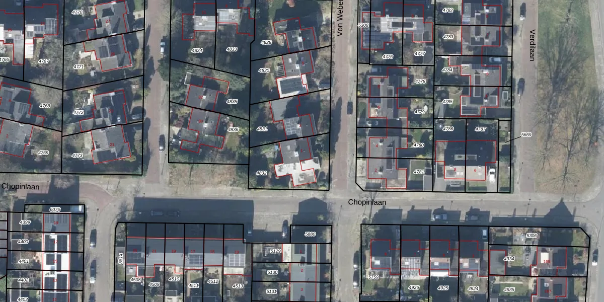 Het perceel waarop Von Weberlaan 1 staat heeft een oppervlakte van 430 m². Dit is een groot perceel. De perceeloppervlakte wordt geregistreerd door het Kadaster. Gedetailleerde informatie over de maten van dit perceel kunt u vinden in het rapport Kadastrale kaart met maatvoering van Von Weberlaan 1.
