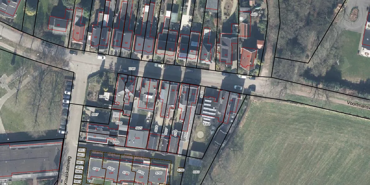 Gebruik de zoekbalk of klik op een perceel voor informatie over de adressen binnen dit perceel.