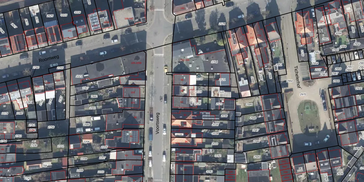 Gebruik de zoekbalk of klik op een perceel voor informatie over de adressen binnen dit perceel.