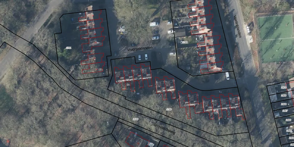 Vrugginklanden 9 is gelegen op kadastraal perceel LNK00P1790. Deze kadastrale aanduiding is uniek en wordt gebruikt door het Kadaster om eigendomsrechten en andere zakelijke rechten vast te leggen. Het perceel maakt onderdeel uit van de kadastrale gemeente Lonneker.