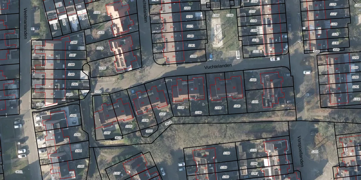 Het perceel waarop Vuchtelanden 22 staat heeft een oppervlakte van 246 m². Dit is een middelgroot perceel. De perceeloppervlakte wordt geregistreerd door het Kadaster. Gedetailleerde informatie over de maten van dit perceel kunt u vinden in het rapport Kadastrale kaart met maatvoering van Vuchtelanden 22.