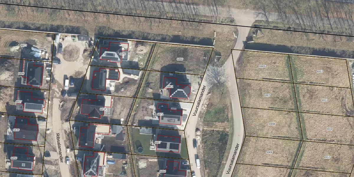 Het perceel waarop Vuursalamander 29 staat heeft een oppervlakte van 521 m². Dit is een groot perceel. De perceeloppervlakte wordt geregistreerd door het Kadaster. Gedetailleerde informatie over de maten van dit perceel kunt u vinden in het rapport Kadastrale kaart met maatvoering van Vuursalamander 29.