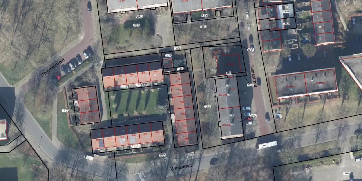 Het perceel waarop Waalstraat 352 staat heeft een oppervlakte van 959 m². Dit is een groot perceel. De perceeloppervlakte wordt geregistreerd door het Kadaster. Gedetailleerde informatie over de maten van dit perceel kunt u vinden in het rapport Kadastrale kaart met maatvoering van Waalstraat 352.