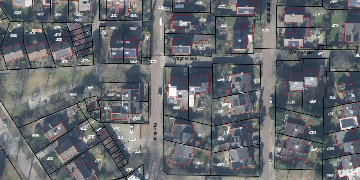 Gebruik de zoekbalk of klik op een perceel voor informatie over de adressen binnen dit perceel.