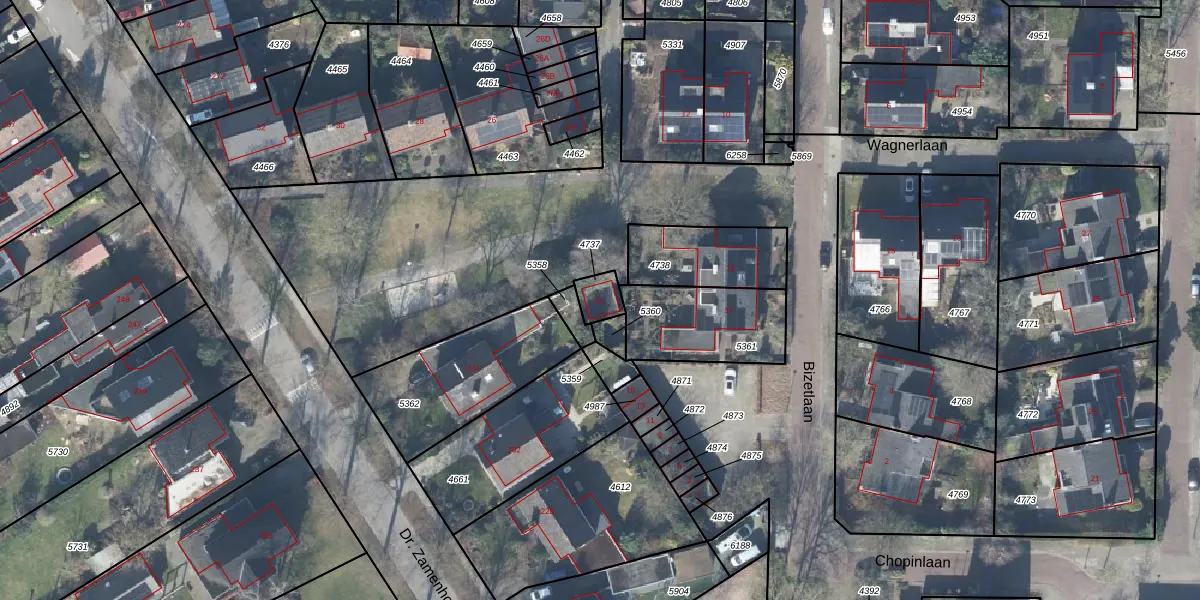 Het perceel waarop Wagnerlaan 21 staat heeft een oppervlakte van 52 m². Dit is een klein perceel. De perceeloppervlakte wordt geregistreerd door het Kadaster. Gedetailleerde informatie over de maten van dit perceel kunt u vinden in het rapport Kadastrale kaart met maatvoering van Wagnerlaan 21.