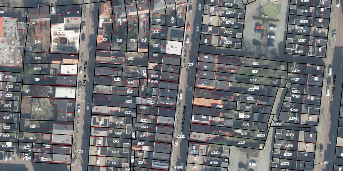 Gebruik de zoekbalk of klik op een perceel voor informatie over de adressen binnen dit perceel.