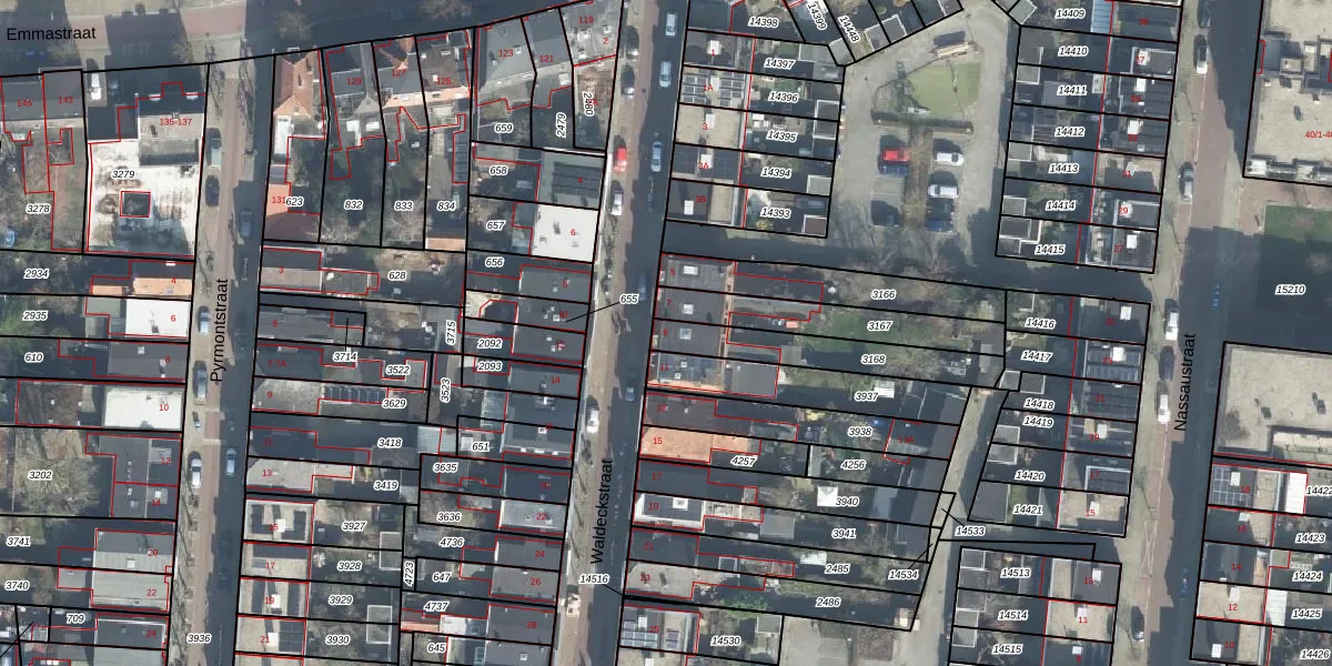 Het perceel waarop Waldeckstraat 9 staat heeft een oppervlakte van 253 m². Dit is een middelgroot perceel. De perceeloppervlakte wordt geregistreerd door het Kadaster. Gedetailleerde informatie over de maten van dit perceel kunt u vinden in het rapport Kadastrale kaart met maatvoering van Waldeckstraat 9.
