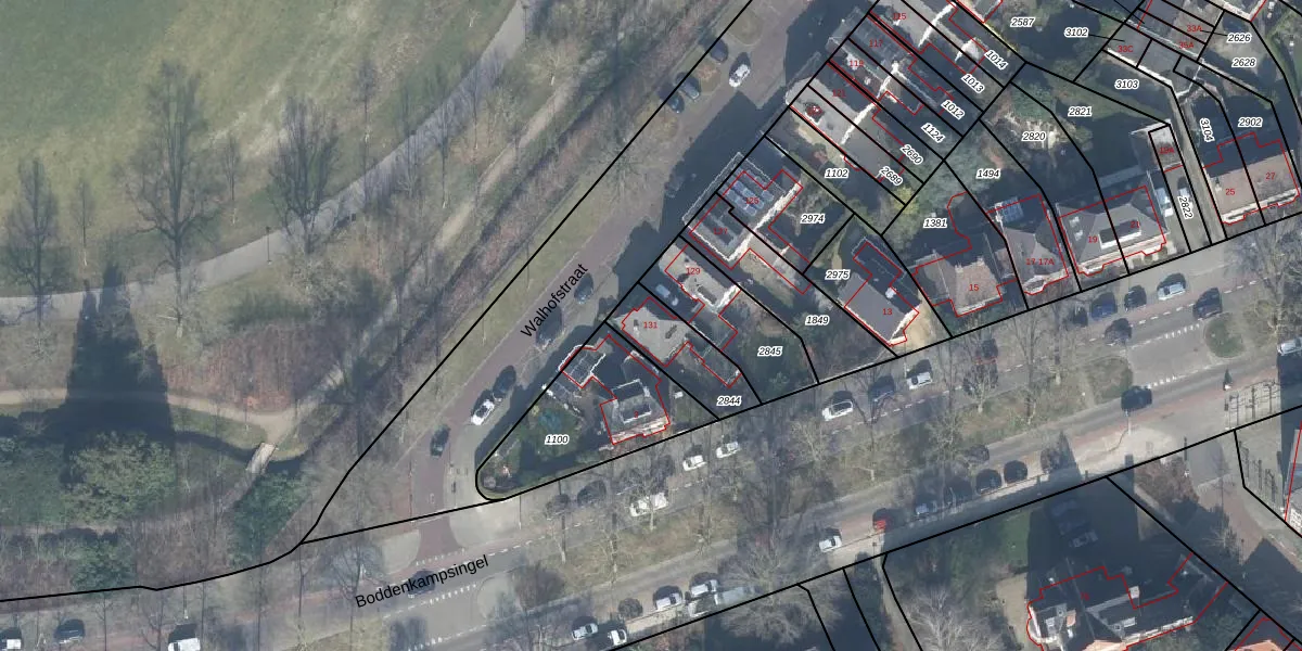 Gebruik de zoekbalk of klik op een perceel voor informatie over de adressen binnen dit perceel.
