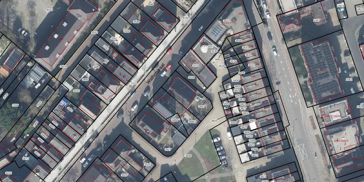 Het perceel waarop Walhofstraat 15 staat heeft een oppervlakte van 344 m². Dit is een groot perceel. De perceeloppervlakte wordt geregistreerd door het Kadaster. Gedetailleerde informatie over de maten van dit perceel kunt u vinden in het rapport Kadastrale kaart met maatvoering van Walhofstraat 15.