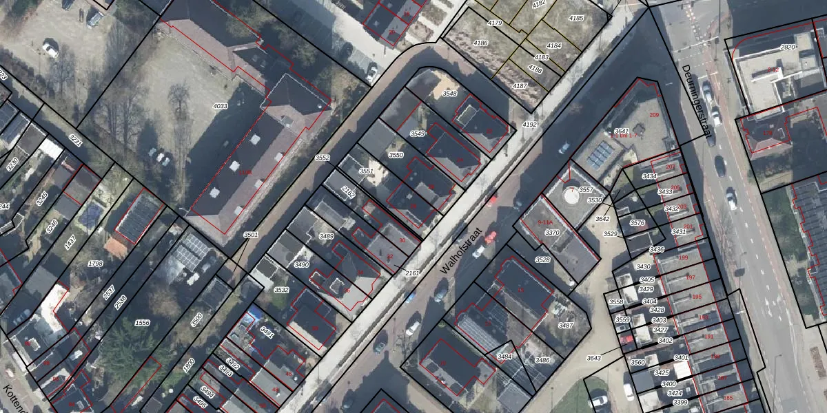 Gebruik de zoekbalk of klik op een perceel voor informatie over de adressen binnen dit perceel.