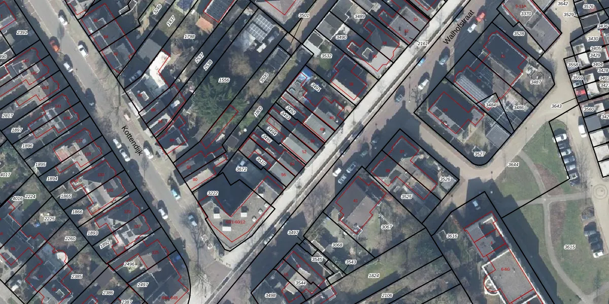 Gebruik de zoekbalk of klik op een perceel voor informatie over de adressen binnen dit perceel.