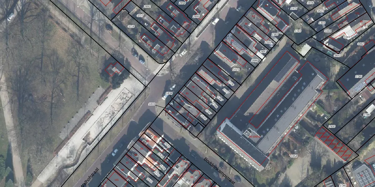 Gebruik de zoekbalk of klik op een perceel voor informatie over de adressen binnen dit perceel.