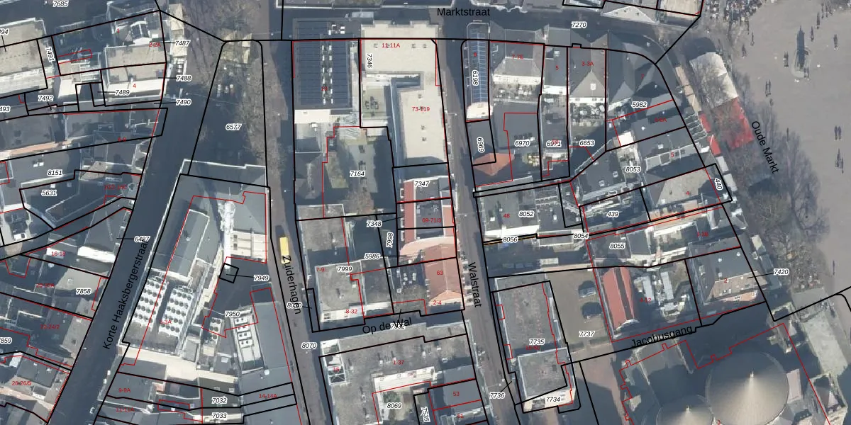 Het perceel waarop Walstraat 69 staat heeft een oppervlakte van 89 m². Dit is een klein perceel. De perceeloppervlakte wordt geregistreerd door het Kadaster. Gedetailleerde informatie over de maten van dit perceel kunt u vinden in het rapport Kadastrale kaart met maatvoering van Walstraat 69.