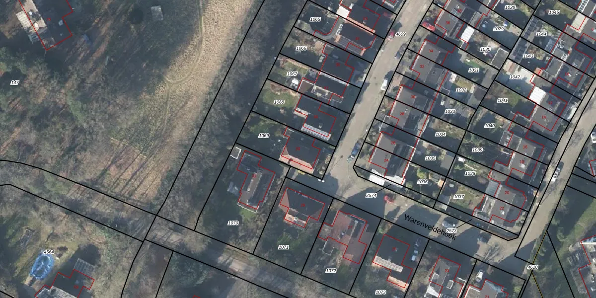 Warenveldehoek 33 is gelegen op kadastraal perceel LNK00U1069. Deze kadastrale aanduiding is uniek en wordt gebruikt door het Kadaster om eigendomsrechten en andere zakelijke rechten vast te leggen. Het perceel maakt onderdeel uit van de kadastrale gemeente Lonneker.