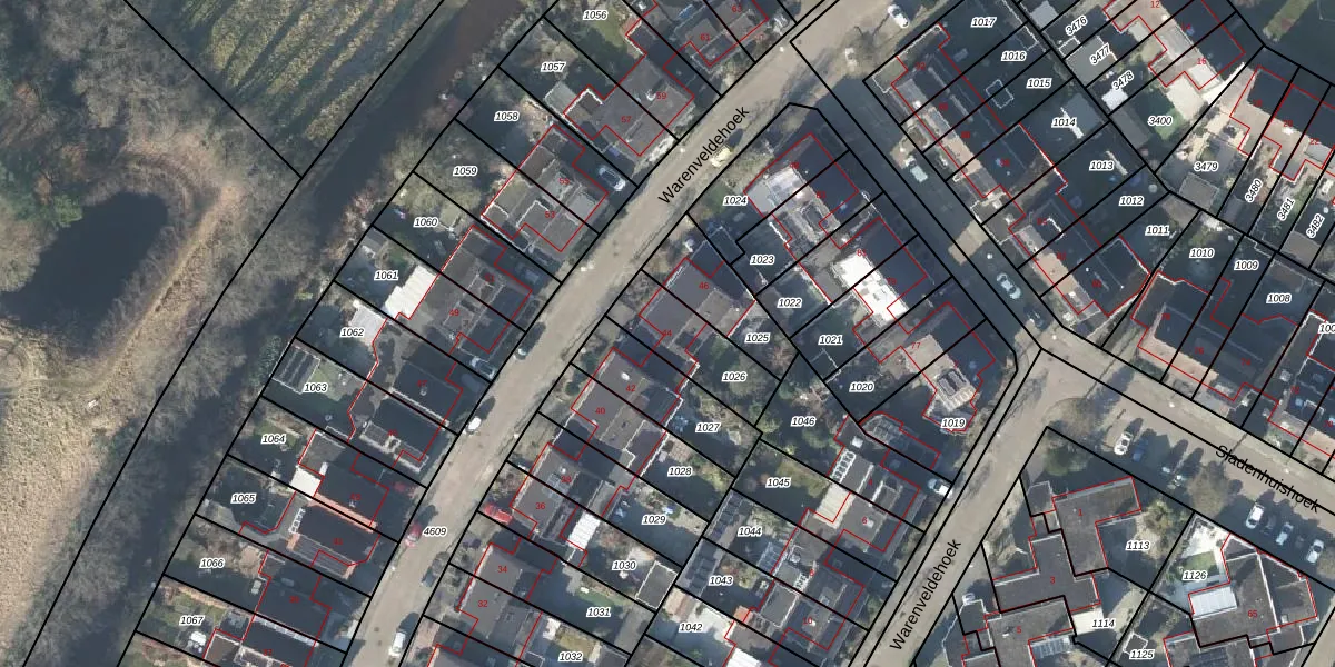 Warenveldehoek 44 is gelegen op kadastraal perceel LNK00U1026. Deze kadastrale aanduiding is uniek en wordt gebruikt door het Kadaster om eigendomsrechten en andere zakelijke rechten vast te leggen. Het perceel maakt onderdeel uit van de kadastrale gemeente Lonneker.
