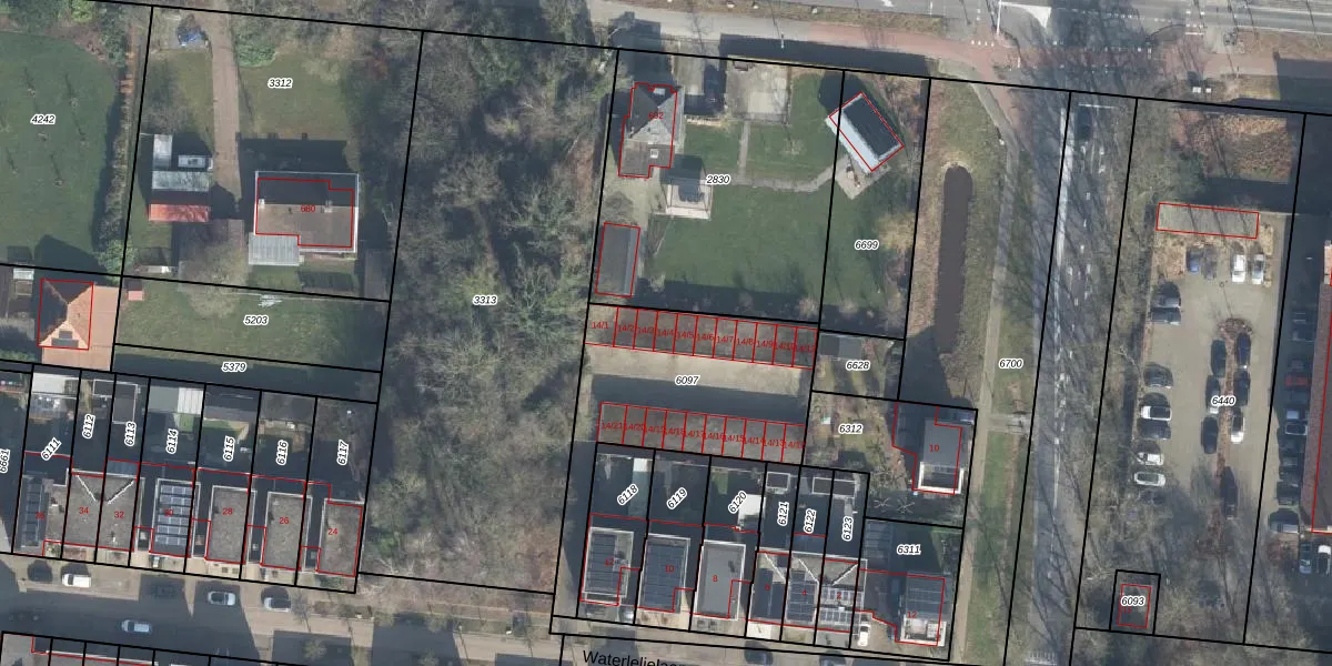 Waterlelielaan 14-4 is gelegen op kadastraal perceel LNK00F6097. Deze kadastrale aanduiding is uniek en wordt gebruikt door het Kadaster om eigendomsrechten en andere zakelijke rechten vast te leggen. Het perceel maakt onderdeel uit van de kadastrale gemeente Lonneker.