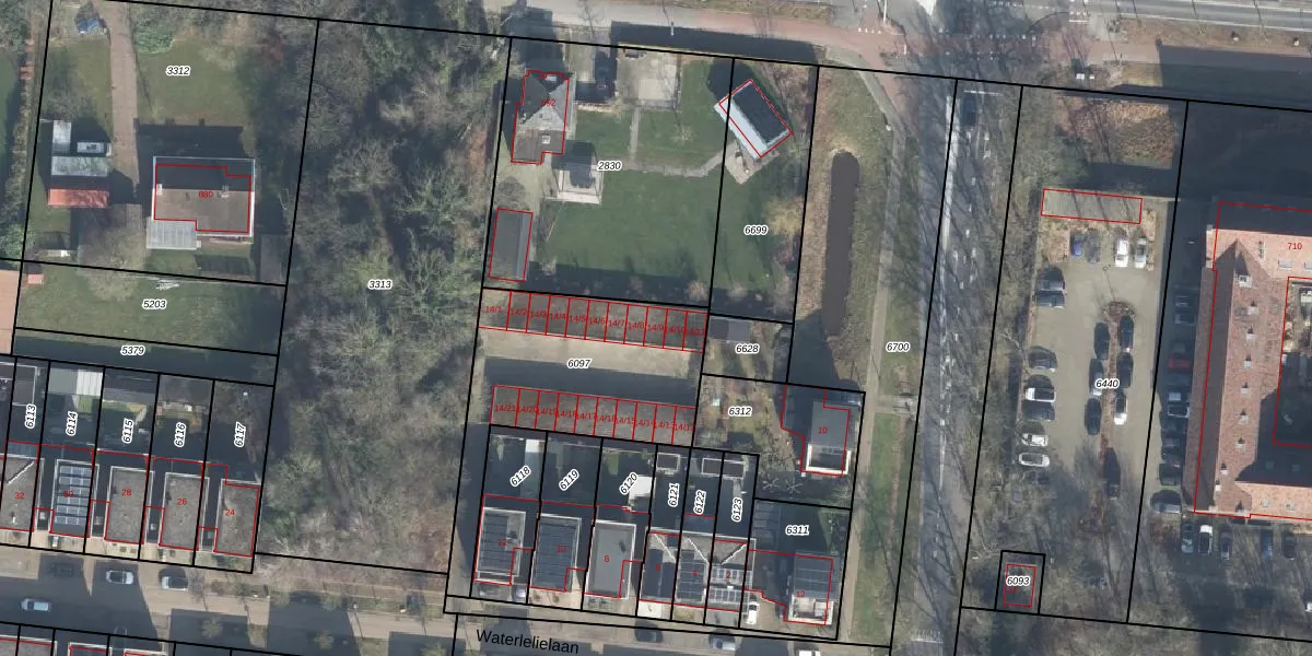 Waterlelielaan 14-9 is gelegen op kadastraal perceel LNK00F6097. Deze kadastrale aanduiding is uniek en wordt gebruikt door het Kadaster om eigendomsrechten en andere zakelijke rechten vast te leggen. Het perceel maakt onderdeel uit van de kadastrale gemeente Lonneker.