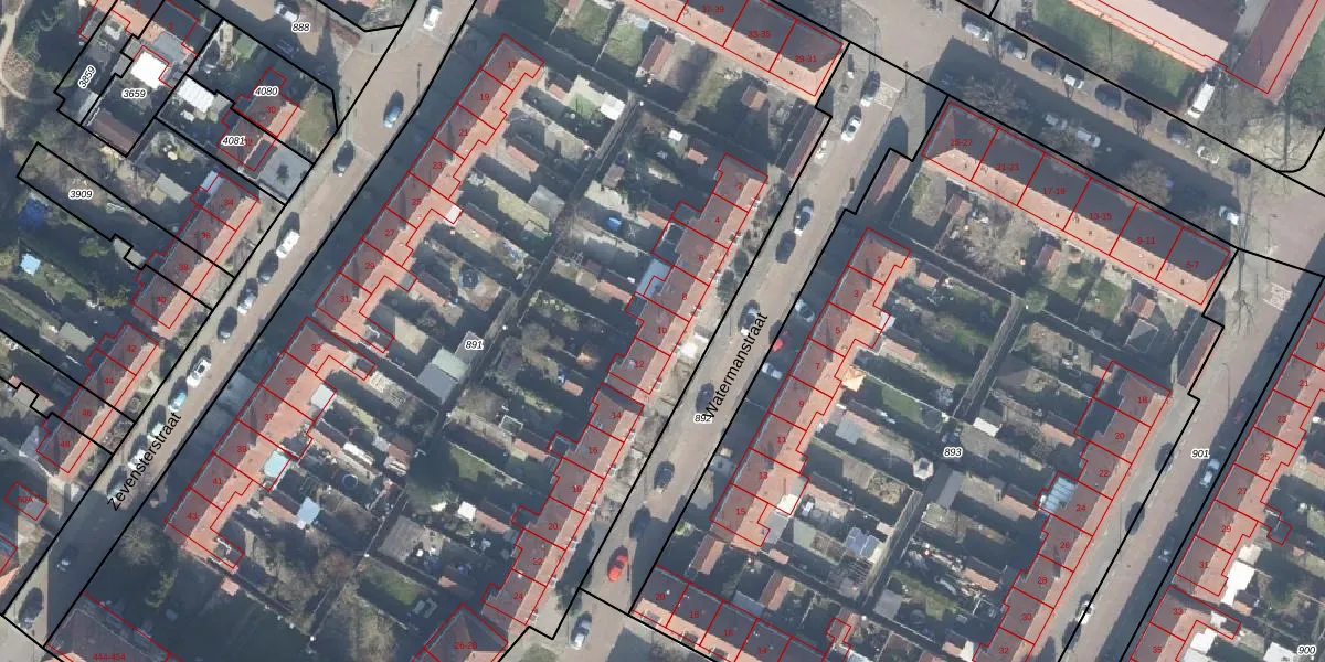 Het perceel waarop Watermanstraat 10 staat heeft een oppervlakte van 7990 m². Dit is een zeer groot perceel. De perceeloppervlakte wordt geregistreerd door het Kadaster. Gedetailleerde informatie over de maten van dit perceel kunt u vinden in het rapport Kadastrale kaart met maatvoering van Watermanstraat 10.