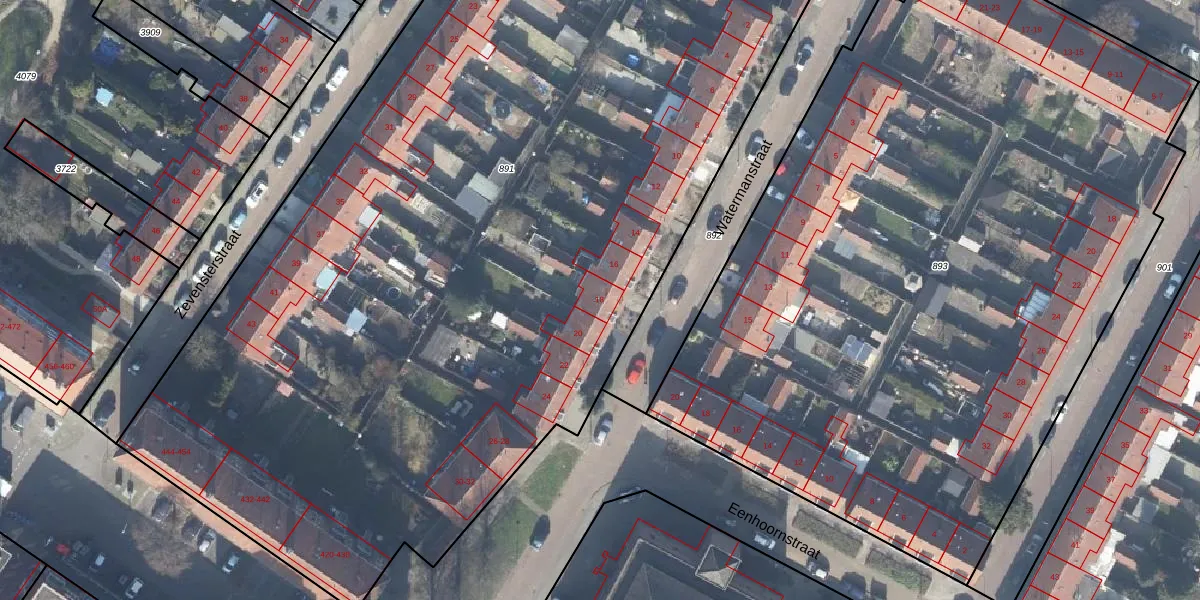Het perceel waarop Watermanstraat 18 staat heeft een oppervlakte van 7990 m². Dit is een zeer groot perceel. De perceeloppervlakte wordt geregistreerd door het Kadaster. Gedetailleerde informatie over de maten van dit perceel kunt u vinden in het rapport Kadastrale kaart met maatvoering van Watermanstraat 18.
