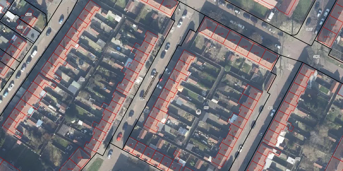 Het perceel waarop Watermanstraat 7 staat heeft een oppervlakte van 5430 m². Dit is een zeer groot perceel. De perceeloppervlakte wordt geregistreerd door het Kadaster. Gedetailleerde informatie over de maten van dit perceel kunt u vinden in het rapport Kadastrale kaart met maatvoering van Watermanstraat 7.