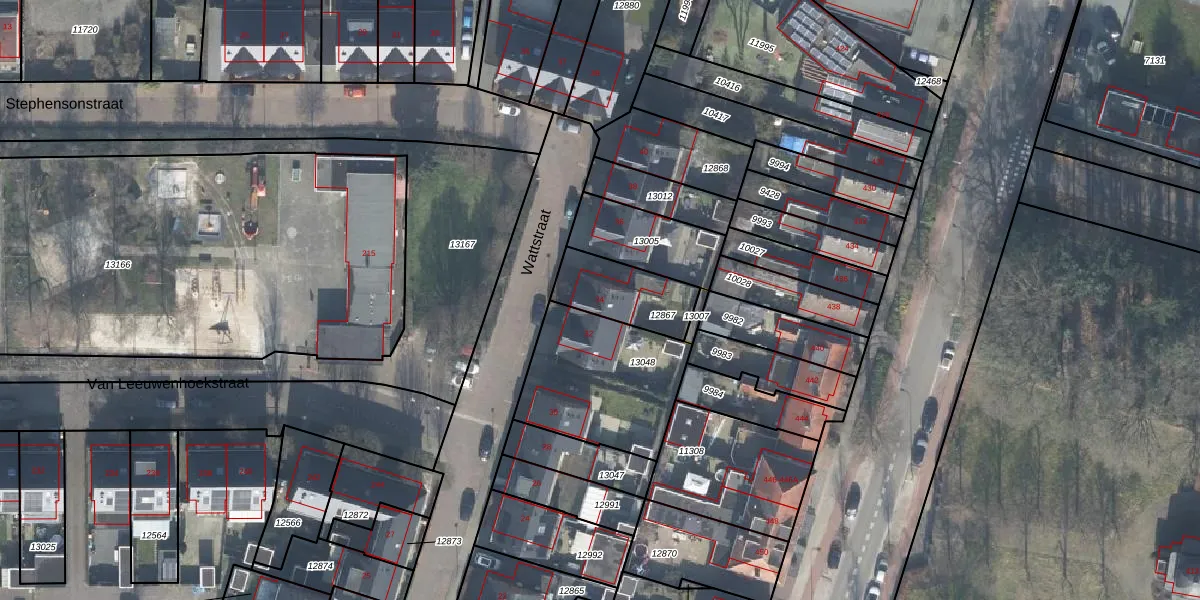 Gebruik de zoekbalk of klik op een perceel voor informatie over de adressen binnen dit perceel.