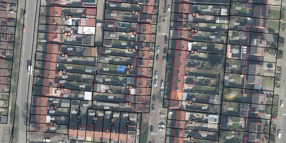 Het perceel waarop W.C. Schoutenstraat 29 staat heeft een oppervlakte van 294 m². Dit is een middelgroot perceel. De perceeloppervlakte wordt geregistreerd door het Kadaster. Gedetailleerde informatie over de maten van dit perceel kunt u vinden in het rapport Kadastrale kaart met maatvoering van W.C. Schoutenstraat 29.