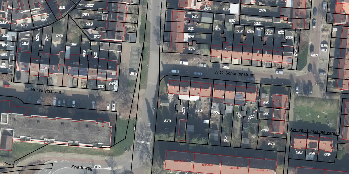 Het perceel waarop W.C. Schoutenstraat 4 staat heeft een oppervlakte van 437 m². Dit is een groot perceel. De perceeloppervlakte wordt geregistreerd door het Kadaster. Gedetailleerde informatie over de maten van dit perceel kunt u vinden in het rapport Kadastrale kaart met maatvoering van W.C. Schoutenstraat 4.