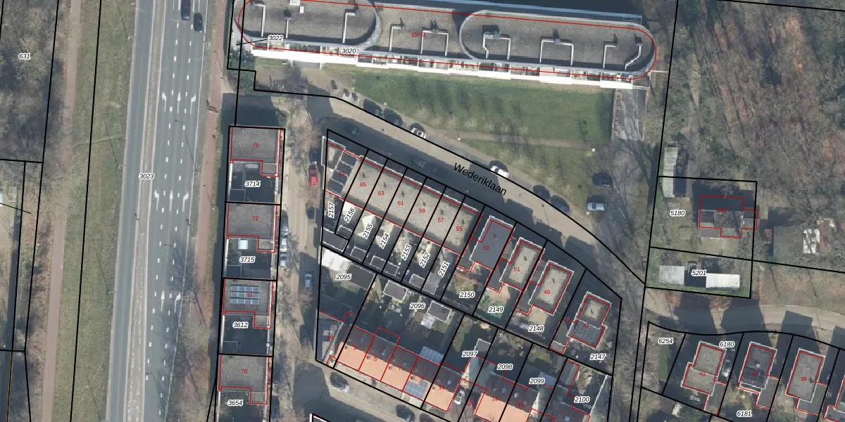 Gebruik de zoekbalk of klik op een perceel voor informatie over de adressen binnen dit perceel.