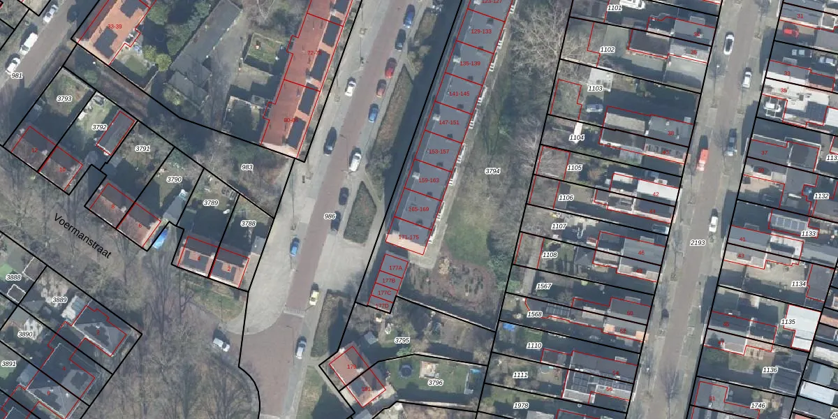 Het perceel waarop Weegschaalstraat 165 staat heeft een oppervlakte van 4150 m². Dit is een zeer groot perceel. De perceeloppervlakte wordt geregistreerd door het Kadaster. Gedetailleerde informatie over de maten van dit perceel kunt u vinden in het rapport Kadastrale kaart met maatvoering van Weegschaalstraat 165.