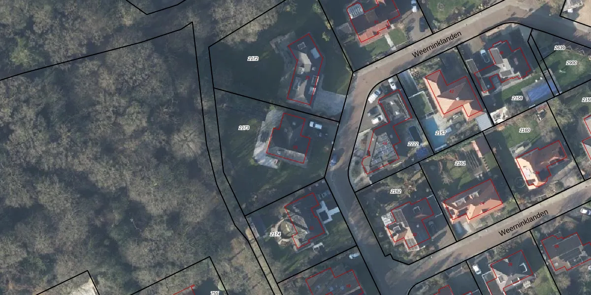 Het perceel waarop Weerninklanden 23 staat heeft een oppervlakte van 1163 m². Dit is een zeer groot perceel. De perceeloppervlakte wordt geregistreerd door het Kadaster. Gedetailleerde informatie over de maten van dit perceel kunt u vinden in het rapport Kadastrale kaart met maatvoering van Weerninklanden 23.
