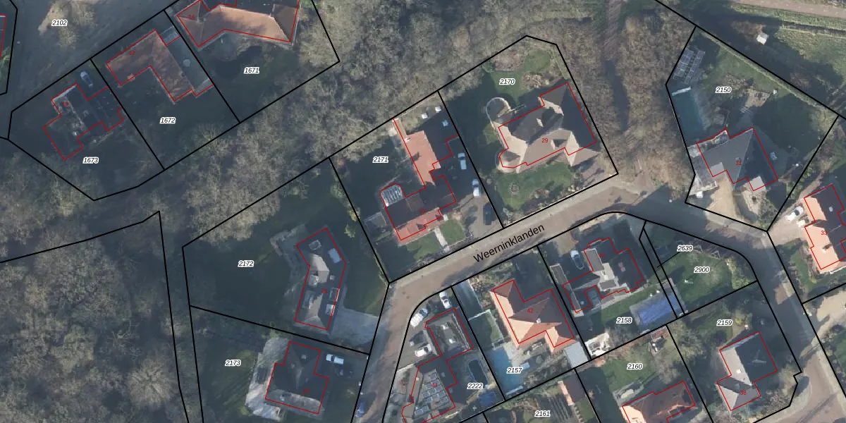 Weerninklanden 27 is gelegen op kadastraal perceel LNK00P2171. Deze kadastrale aanduiding is uniek en wordt gebruikt door het Kadaster om eigendomsrechten en andere zakelijke rechten vast te leggen. Het perceel maakt onderdeel uit van de kadastrale gemeente Lonneker.