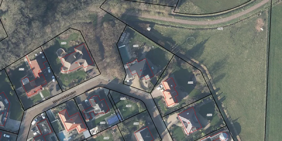 Weerninklanden 31 is gelegen op kadastraal perceel LNK00P2150. Deze kadastrale aanduiding is uniek en wordt gebruikt door het Kadaster om eigendomsrechten en andere zakelijke rechten vast te leggen. Het perceel maakt onderdeel uit van de kadastrale gemeente Lonneker.