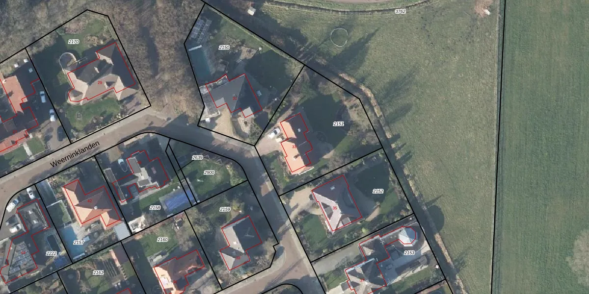 Weerninklanden 33 is gelegen op kadastraal perceel LNK00P2151. Deze kadastrale aanduiding is uniek en wordt gebruikt door het Kadaster om eigendomsrechten en andere zakelijke rechten vast te leggen. Het perceel maakt onderdeel uit van de kadastrale gemeente Lonneker.