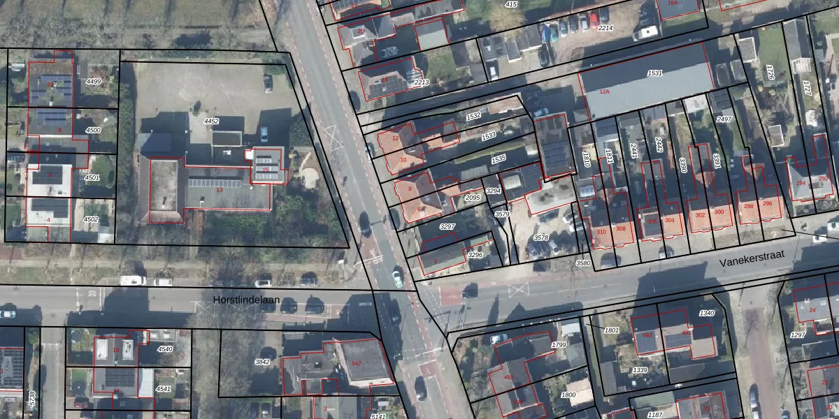 Gebruik de zoekbalk of klik op een perceel voor informatie over de adressen binnen dit perceel.