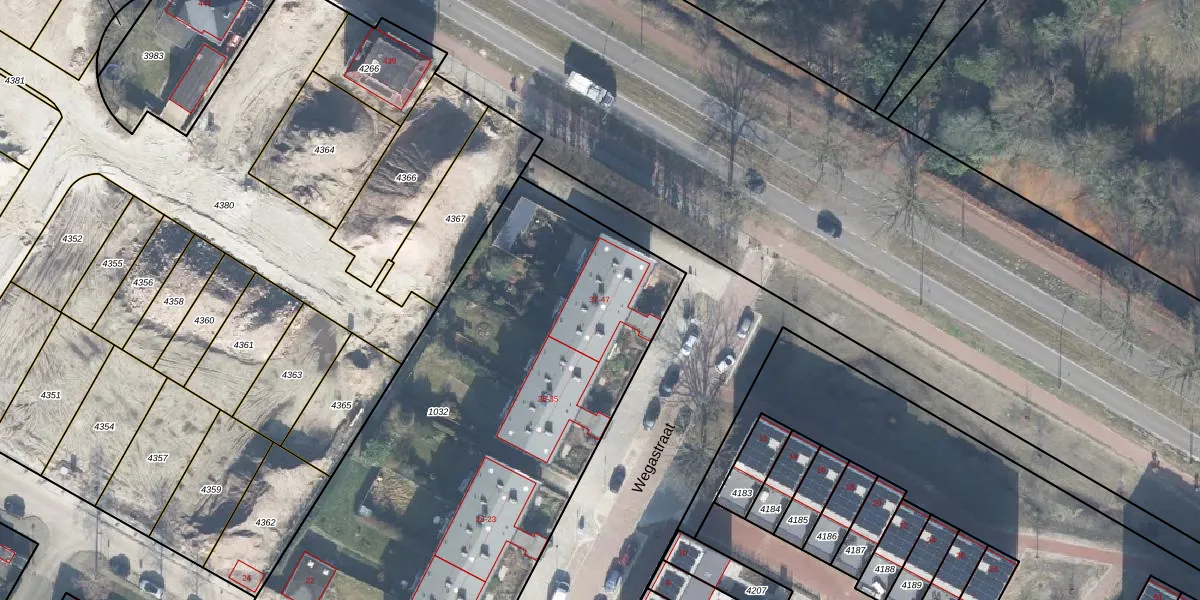 Het perceel waarop Wegastraat 37 staat heeft een oppervlakte van 2933 m². Dit is een zeer groot perceel. De perceeloppervlakte wordt geregistreerd door het Kadaster. Gedetailleerde informatie over de maten van dit perceel kunt u vinden in het rapport Kadastrale kaart met maatvoering van Wegastraat 37.