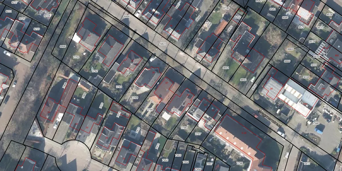 Het perceel waarop Wegmanstraat 27 staat heeft een oppervlakte van 420 m². Dit is een groot perceel. De perceeloppervlakte wordt geregistreerd door het Kadaster. Gedetailleerde informatie over de maten van dit perceel kunt u vinden in het rapport Kadastrale kaart met maatvoering van Wegmanstraat 27.