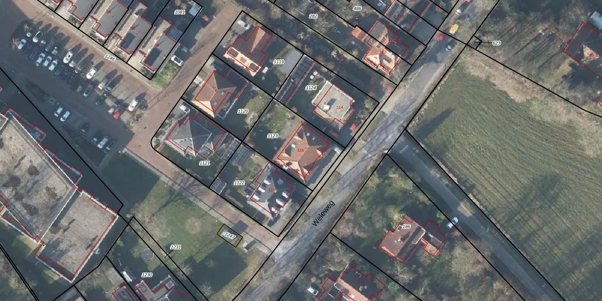 Weleweg 116 is gelegen op kadastraal perceel LNK00W1123. Deze kadastrale aanduiding is uniek en wordt gebruikt door het Kadaster om eigendomsrechten en andere zakelijke rechten vast te leggen. Het perceel maakt onderdeel uit van de kadastrale gemeente Lonneker.