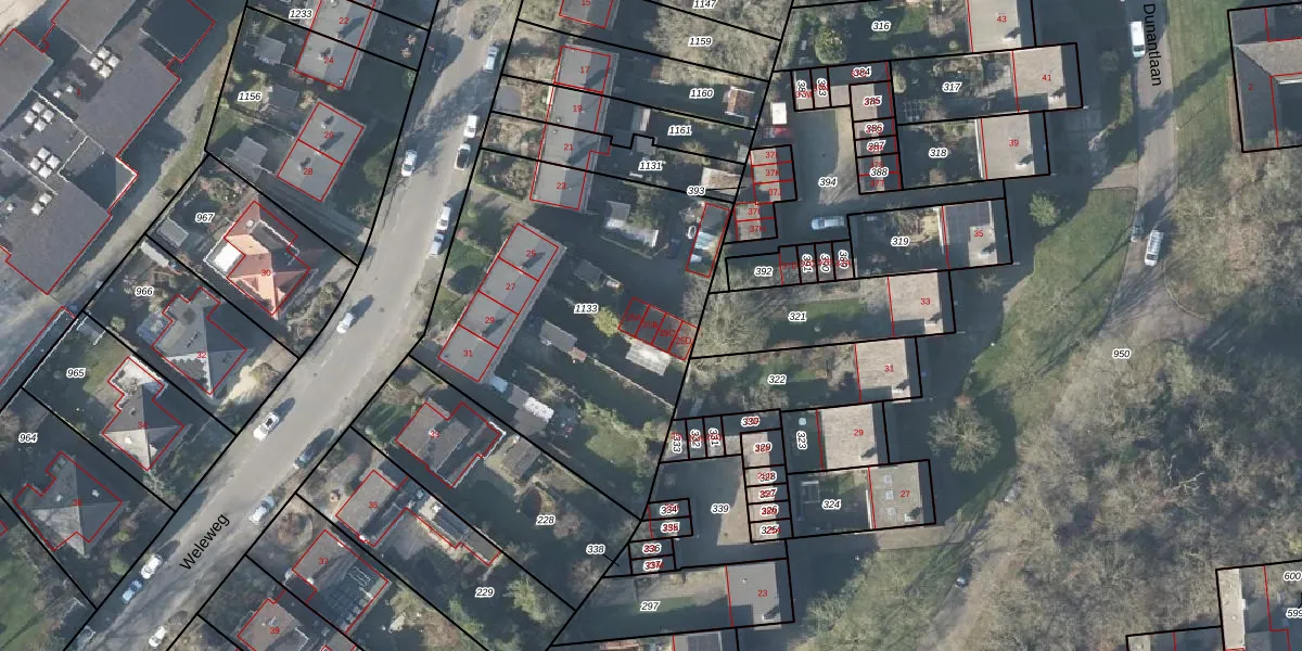 Weleweg 25-B is gelegen op kadastraal perceel LNK00W1133. Deze kadastrale aanduiding is uniek en wordt gebruikt door het Kadaster om eigendomsrechten en andere zakelijke rechten vast te leggen. Het perceel maakt onderdeel uit van de kadastrale gemeente Lonneker.