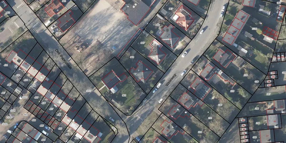 Het perceel waarop Weleweg 36 staat heeft een oppervlakte van 495 m². Dit is een groot perceel. De perceeloppervlakte wordt geregistreerd door het Kadaster. Gedetailleerde informatie over de maten van dit perceel kunt u vinden in het rapport Kadastrale kaart met maatvoering van Weleweg 36.