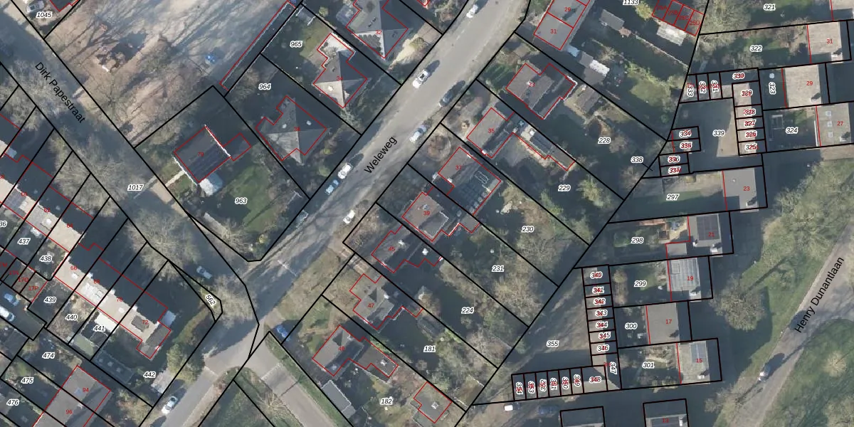 Het perceel waarop Weleweg 39 staat heeft een oppervlakte van 555 m². Dit is een groot perceel. De perceeloppervlakte wordt geregistreerd door het Kadaster. Gedetailleerde informatie over de maten van dit perceel kunt u vinden in het rapport Kadastrale kaart met maatvoering van Weleweg 39.