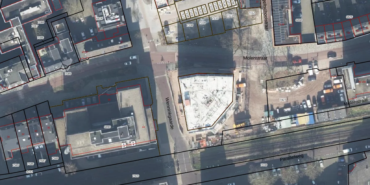 Het perceel waarop Wenninkgaarde 43-213 staat heeft een oppervlakte van 712 m². Dit is een groot perceel. De perceeloppervlakte wordt geregistreerd door het Kadaster. Gedetailleerde informatie over de maten van dit perceel kunt u vinden in het rapport Kadastrale kaart met maatvoering van Wenninkgaarde 43-213.