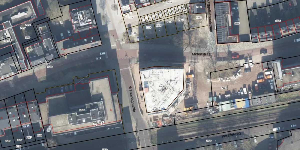Het perceel waarop Wenninkgaarde 43-308 staat heeft een oppervlakte van 712 m². Dit is een groot perceel. De perceeloppervlakte wordt geregistreerd door het Kadaster. Gedetailleerde informatie over de maten van dit perceel kunt u vinden in het rapport Kadastrale kaart met maatvoering van Wenninkgaarde 43-308.