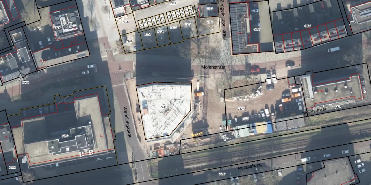 Het perceel waarop Wenninkgaarde 43-413 staat heeft een oppervlakte van 712 m². Dit is een groot perceel. De perceeloppervlakte wordt geregistreerd door het Kadaster. Gedetailleerde informatie over de maten van dit perceel kunt u vinden in het rapport Kadastrale kaart met maatvoering van Wenninkgaarde 43-413.